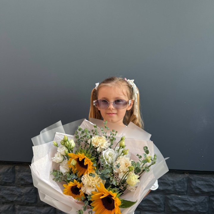 Букет из стойких цветов с подсолнухами