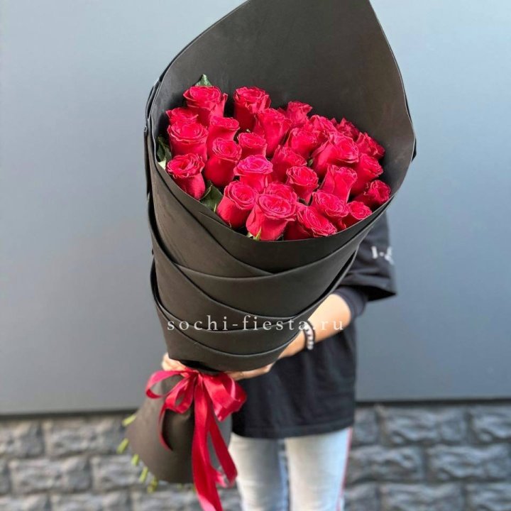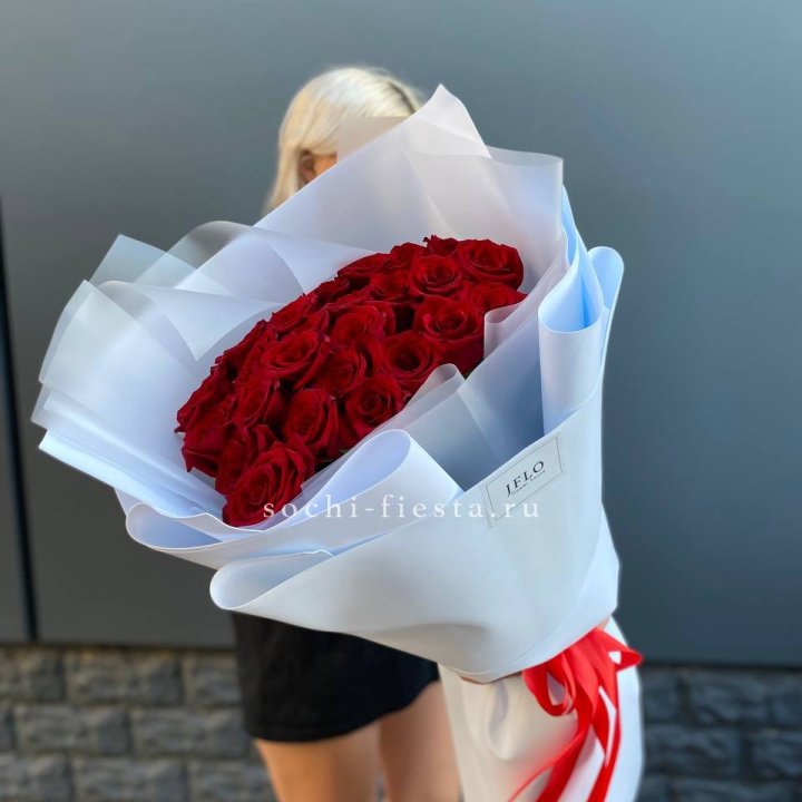 25 высоких красных роз