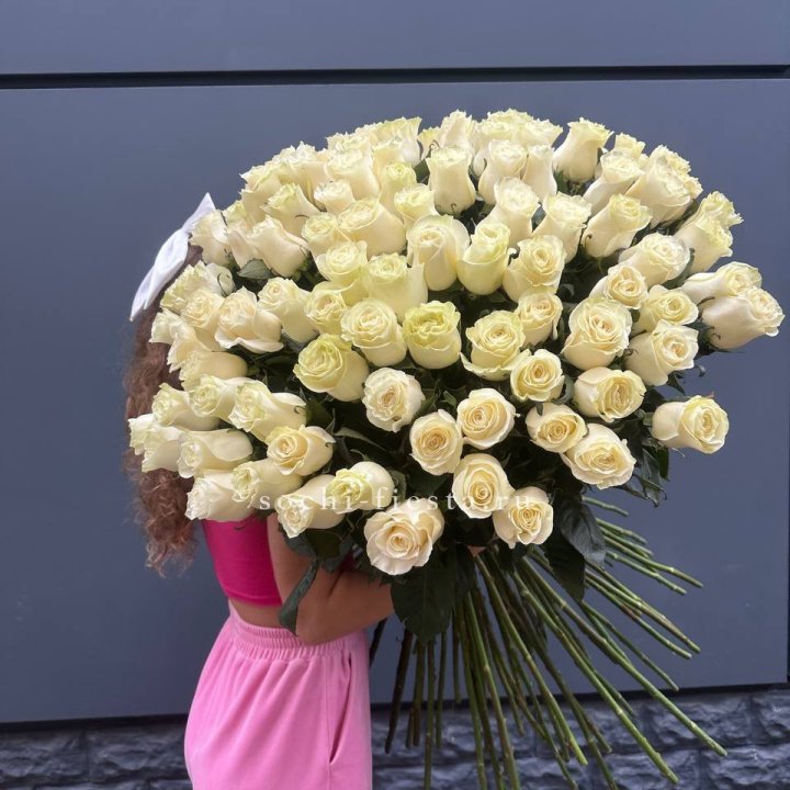 101 белая высокая импортная роза