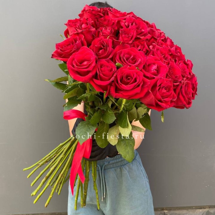 35 красных роз под ленту