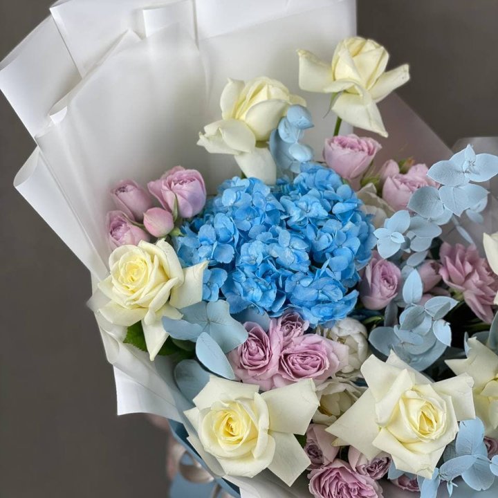 Букет с гортензиями "Блубери"