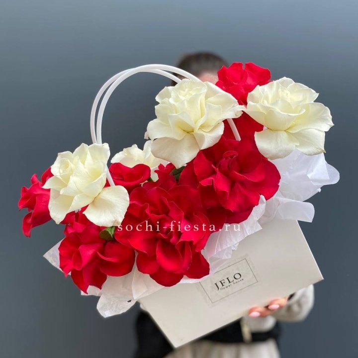 Сумочка красных и белых роз
