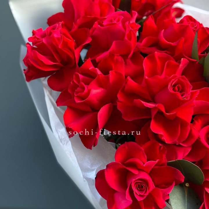 101 красная роза с эвкалиптом