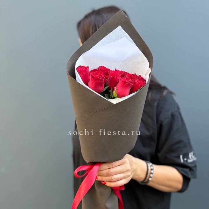 19 красных роз в крафте