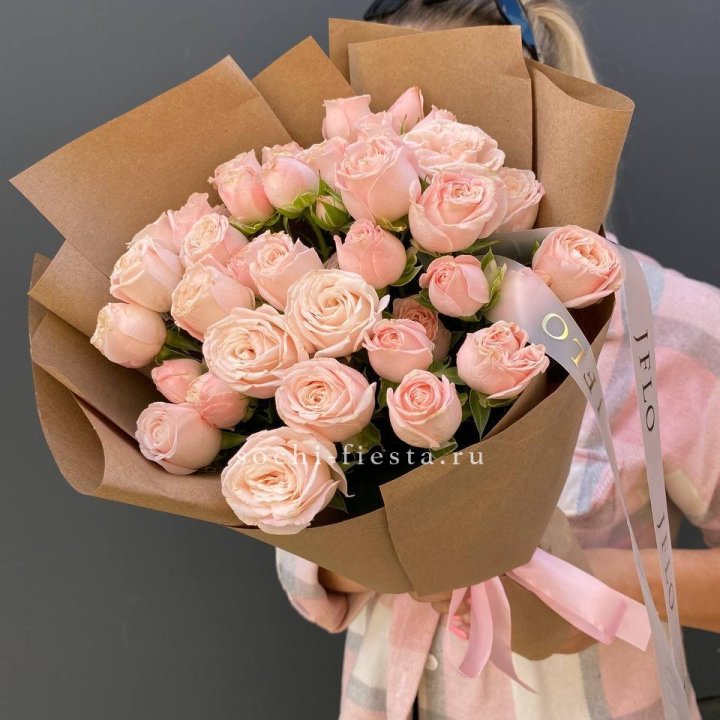 Кустовые розы Бомбастик в крафте