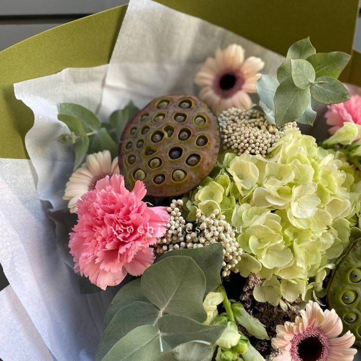 Букет гортензии и кустовых роз
