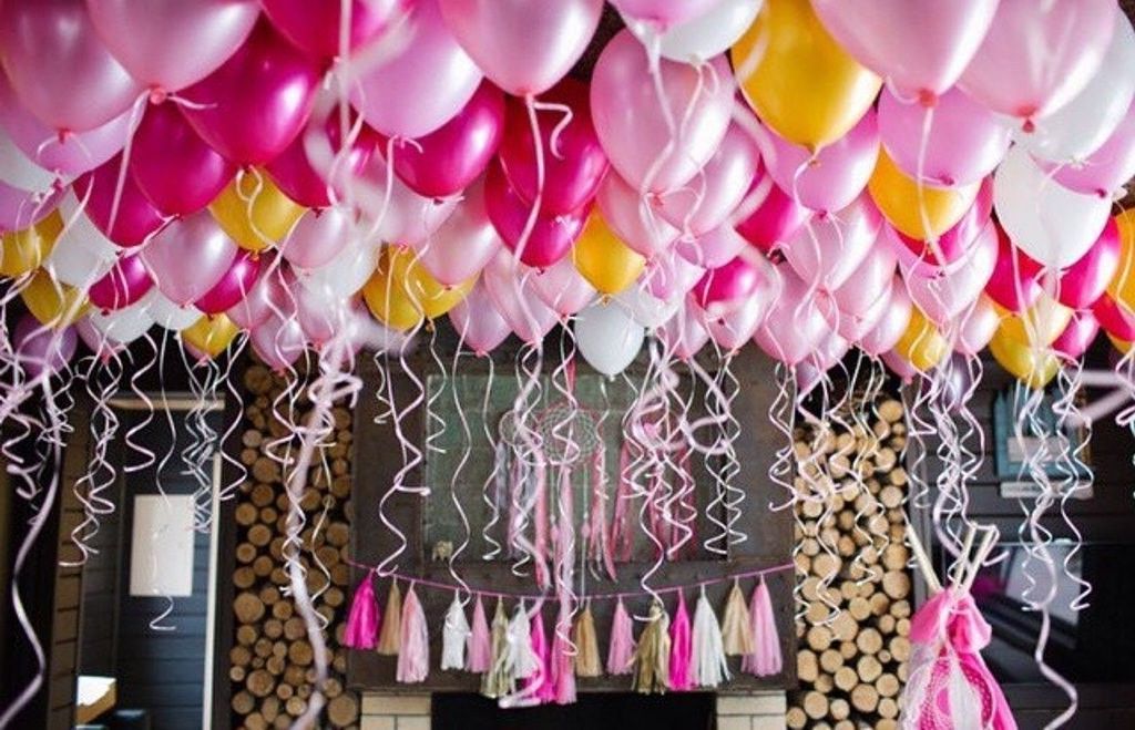 мисти баблс, эустома, гортензия в воздушном оформлении.