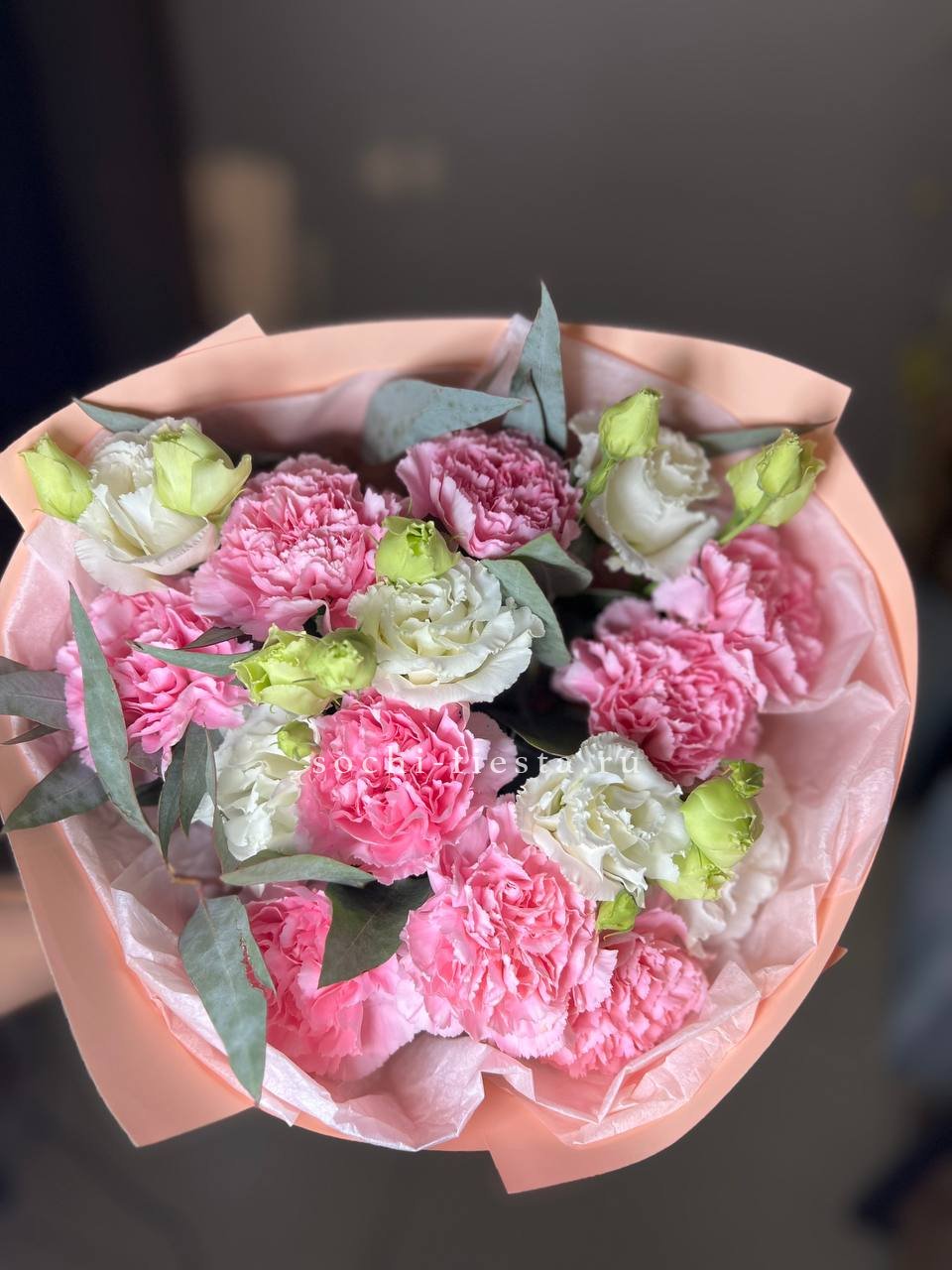 Для заказа товара "Букет гвоздик и эустом "Сири"" с доставкой в Нижнем Новгороде нажмите в корзину
