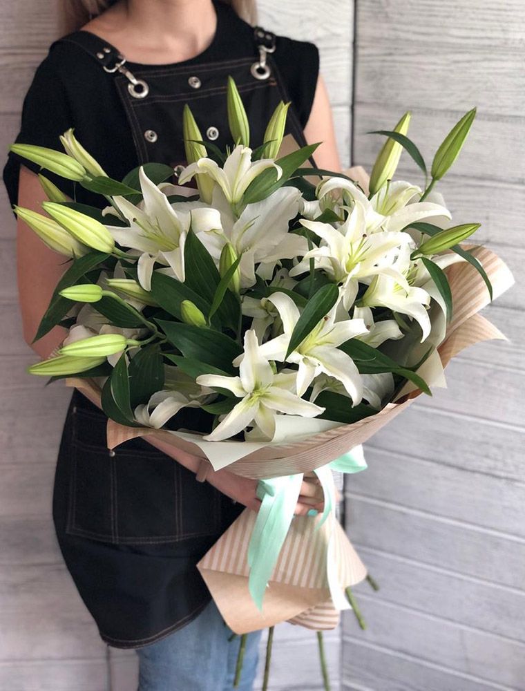 Мы работаем только со свежими цветами — букеты радуют от 7 до 14 дней и дольше при правильном уходе.