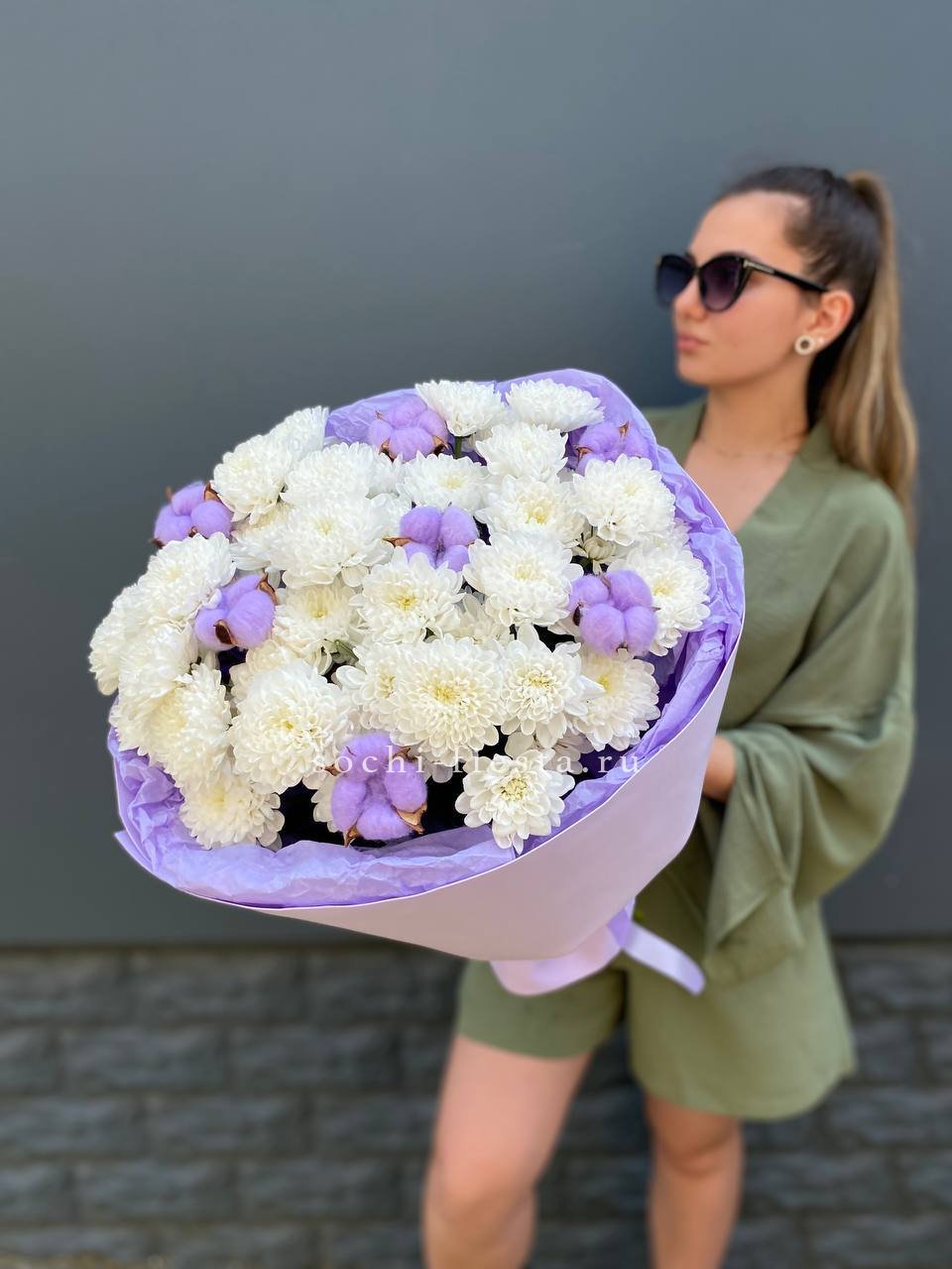 Для заказа товара " Букет хризантем и хлопка" с доставкой в Нижнем Новгороде нажмите в корзину