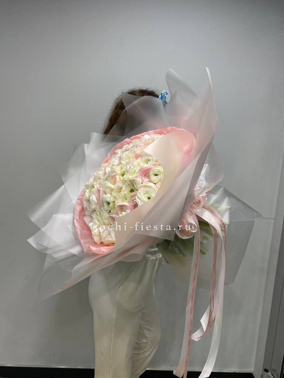микс охапки ранункулюсов в нежном оформлении Количество можно согласовать у менеджера) Ранункулюсы- нежные цветы и большое количество собирается в плотную сборку)Такой объём лучше заказывать за 1.5 недели)