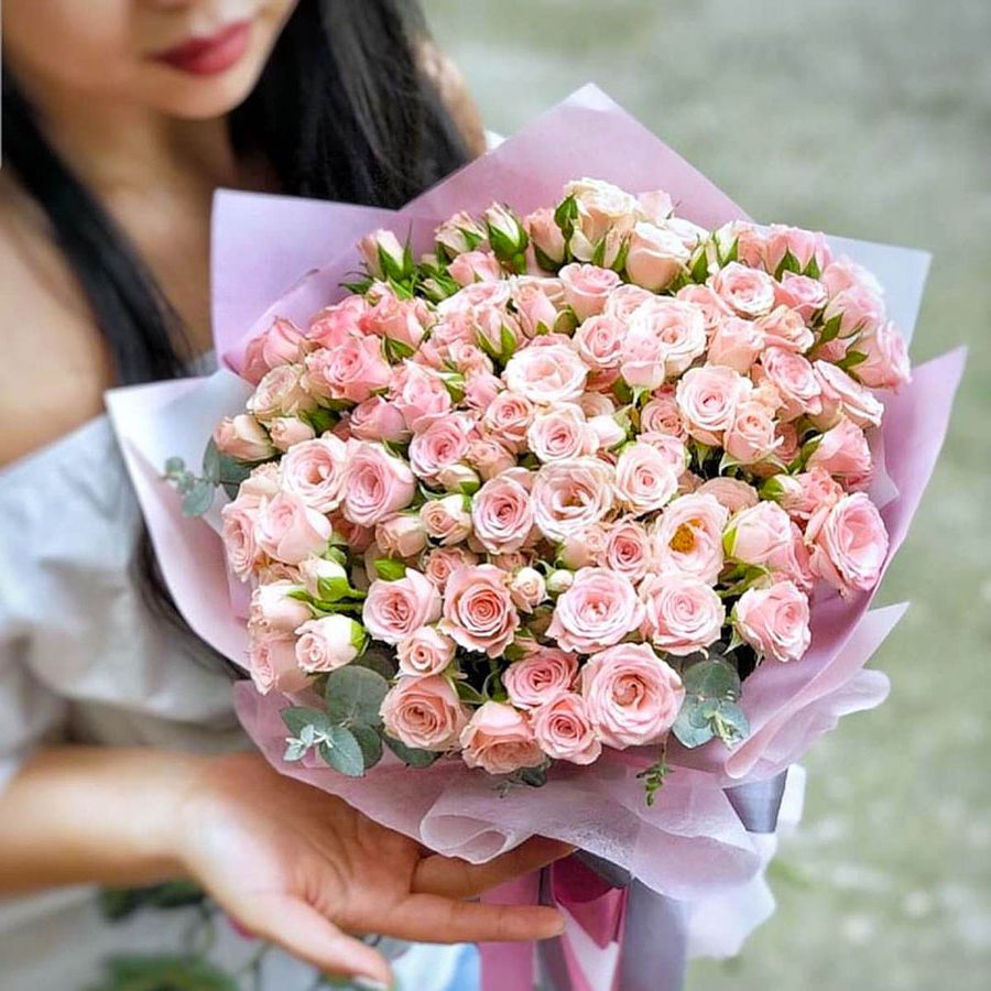 Состав букета на фотографии: 29 роз карина, крафт, лента