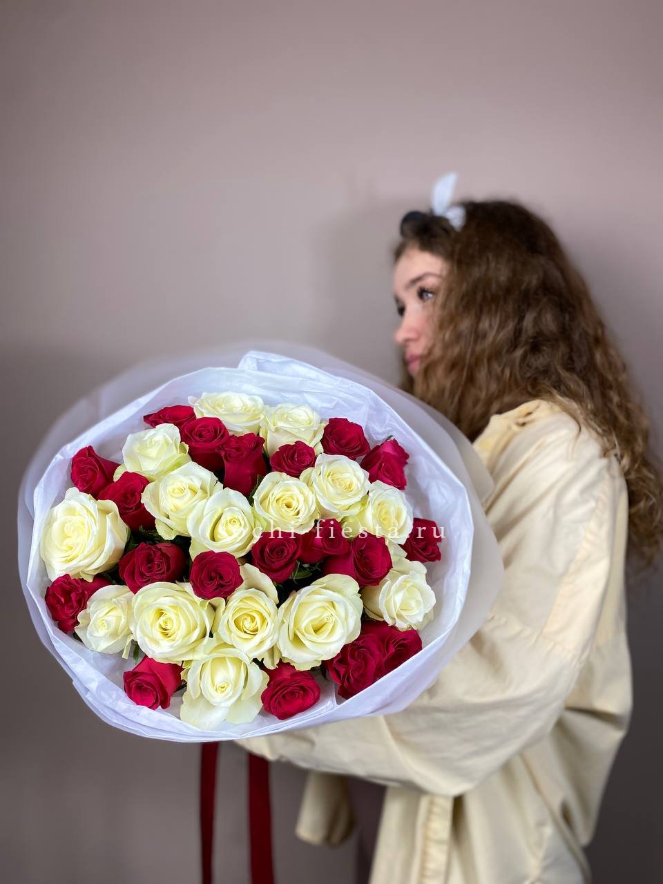 Для заказа товара "Букет из красных белых 35 роз" с доставкой в Нижнем Новгороде нажмите в корзину