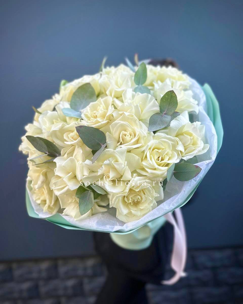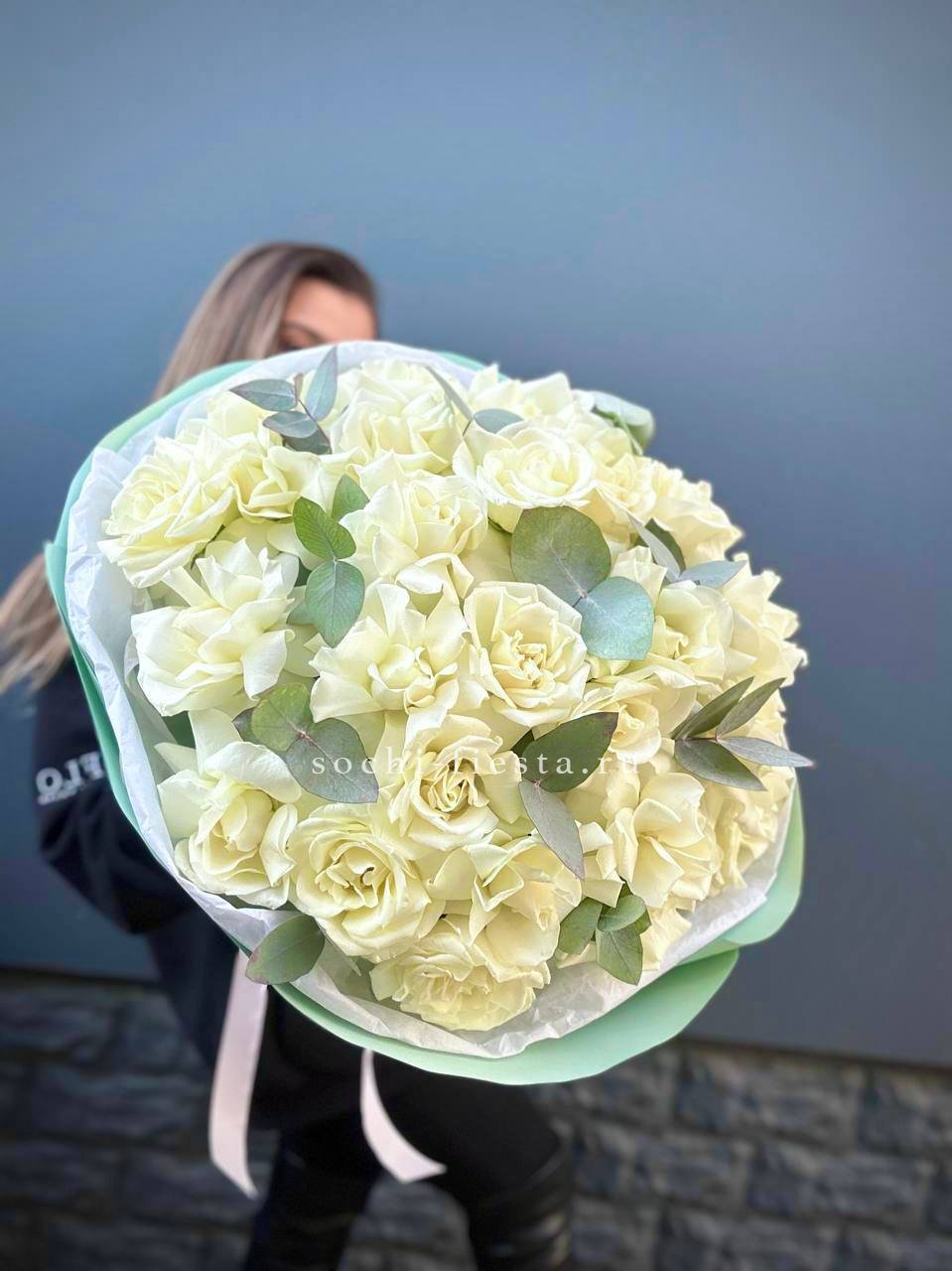вывернутые розы, эвкалипт, лента, авторская упаковка.