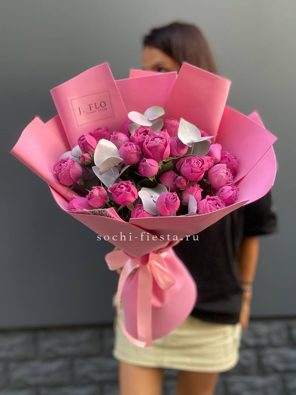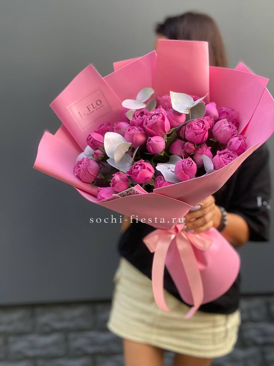 19 веток  пионовидных роз мисти баблс, лента, дизайнерская упаковка.