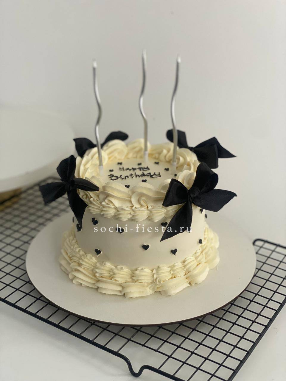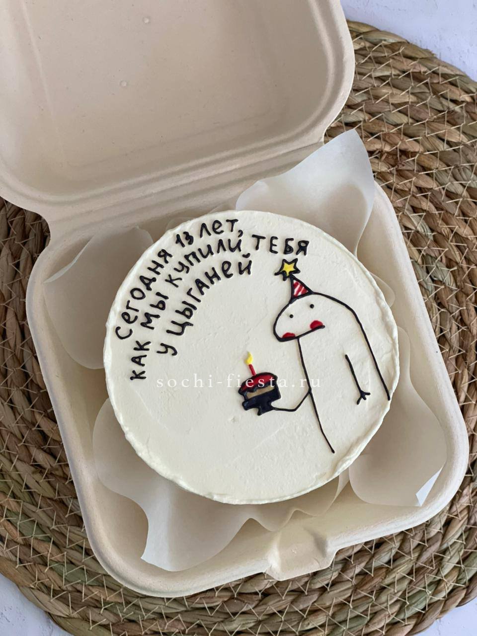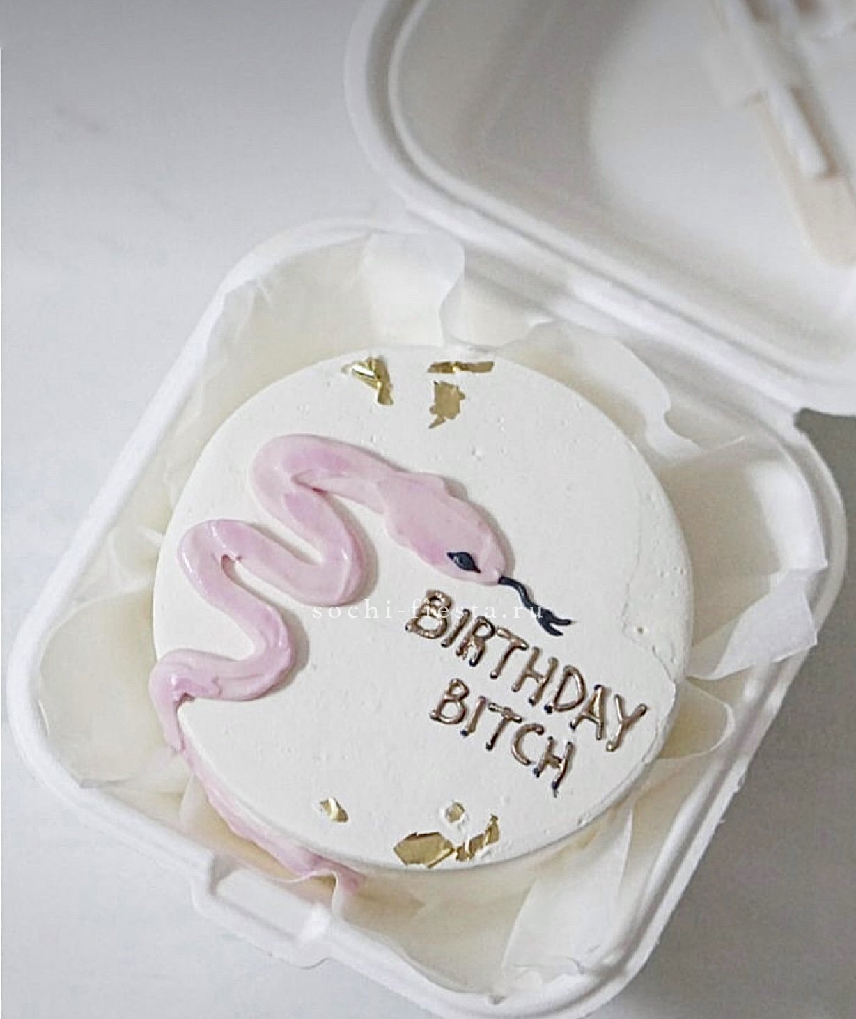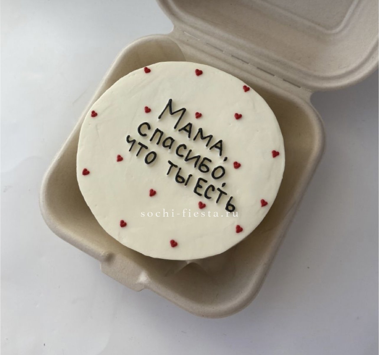 Дизайнерский бенто-торт ручной работы с поздравительной надписью и готовым декором. Формат удобен для камерного чаепития или как дополнение к основному подарку.