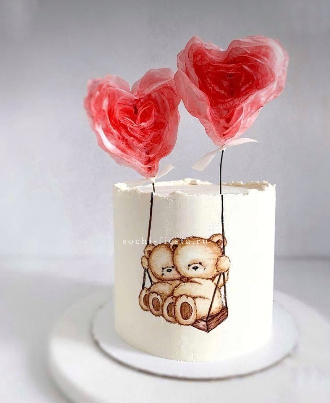 Двухъярусная конструкция с плавным переходом оттенков от пудрового к насыщенному розовому. Гладкая поверхность крема контрастирует с объемными цветочными деталями. Ручная работа с выбором начинки.