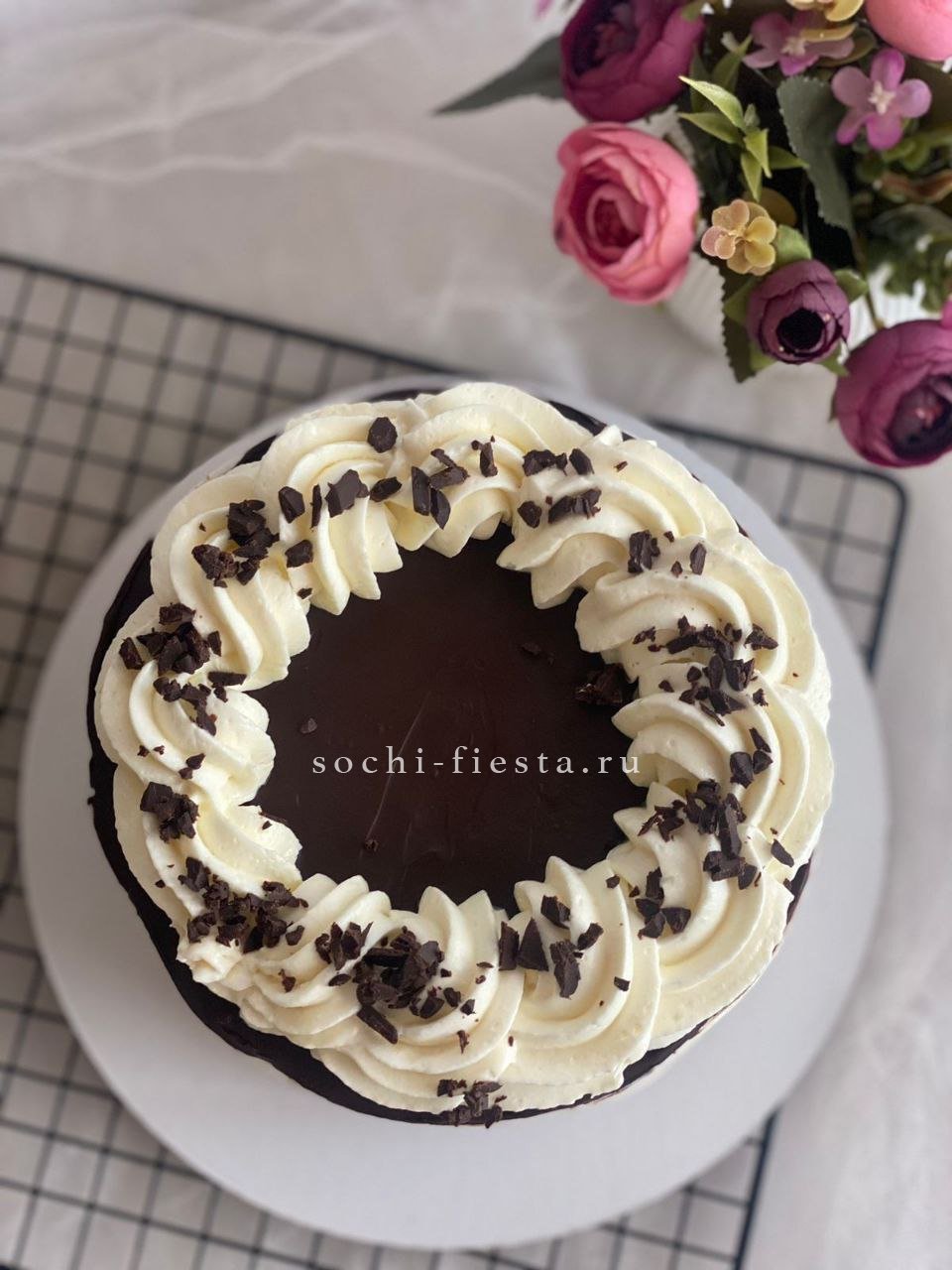 Авторская работа с плавными переходами крема и графичными линиями глазури. Декор выстроен по спирали, создавая динамику и объем. Каждый слой подчинен единому ритму.